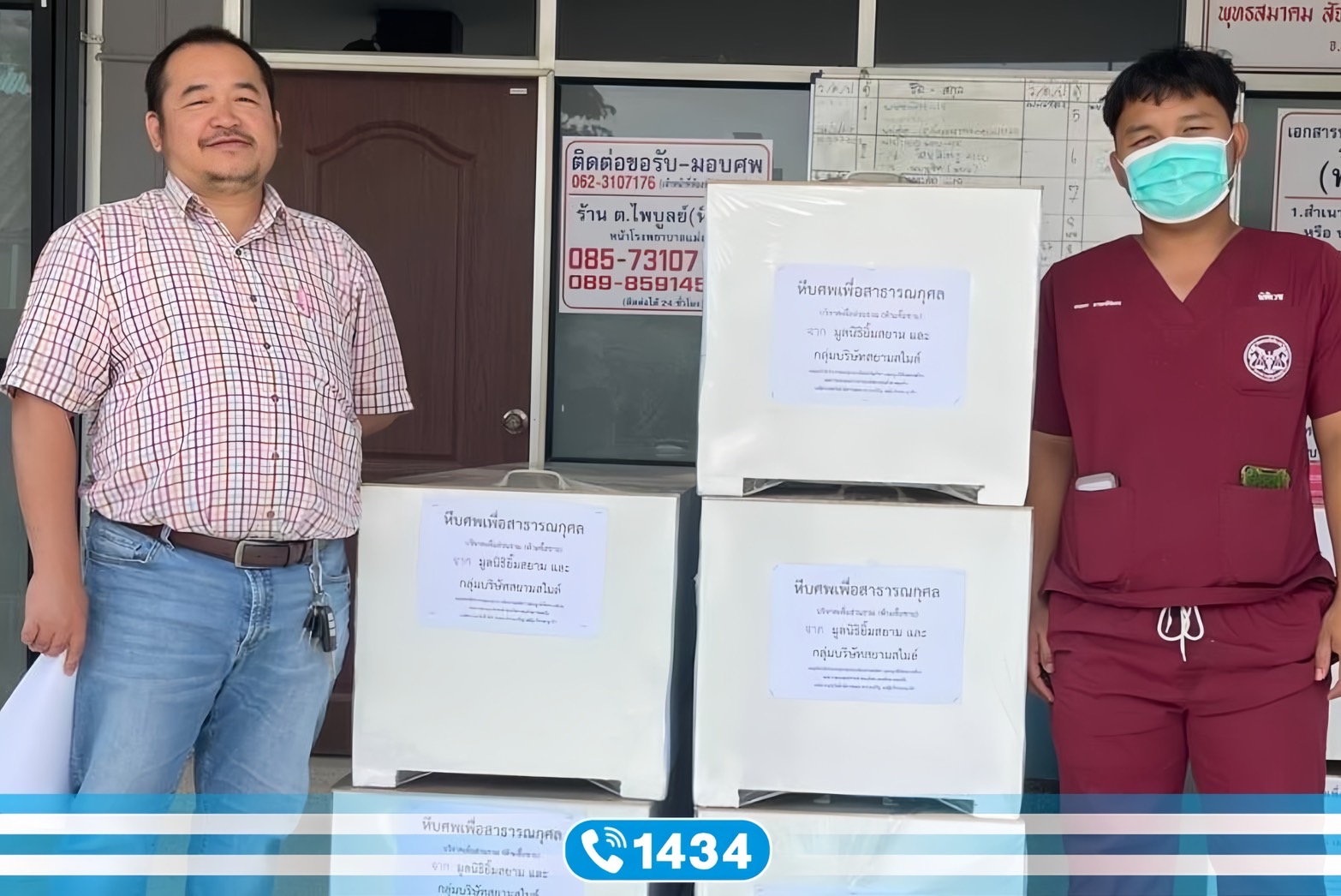 ร่วมสมทบทุนเพื่อบริจาคโลงศพ พร้อมอุปกรณ์สำหรับเก็บศพแด่ศพไร้ญาติและขาดทุนทรัพย์ โดยได้มอบให้โรงพยาบาลที่อยู่บริเวณชายแดนของประเทศ ได้แก่ โรงพยาบาลแม่สอด จ.ตาก และ โรงพยาบาลแม่สาย จ.เชียงราย ซึ่งรวมเป็นยอดบริจาคทั้งสิ้น 45,249 บาท สำหรับการสบทบทุนบริจาคในครั้งนี้ ก็เพือมอบเป็นสาธารณะกุศลให้แก่โรงพยาบาลที่เป็นปลายทางพิสูจน์ด้านนิติเวช เนื่องจากศพไร้ญาติ ไม่สามารถนำโลงศพไปใช้และทำพิธีกรรมทางศาสนาได้ ทำให้ศพไร้ญาติเหล่านี้ ต้องถูกนำไปฝังในป่าช้า และต้องรอครบ 10 ปี ถึงจะทำการล้างป่าช้าเพื่อนำมาทำพิธีกรรมทางศาสนาได้